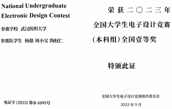 2023年全国老员工电子设计竞赛(本科组)全国一等奖两项