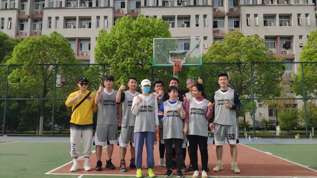2021年4月17日在阳光校区篮球场上,一场别开生面的篮球赛热烈的展开,来自公司的10名研究生学子参赛,他们分别是队长夏若平,队员王鹏、舒昂、高彪、吴畏成、罗亮、张帅、朱奥琪、张敏以及汪晨颖。