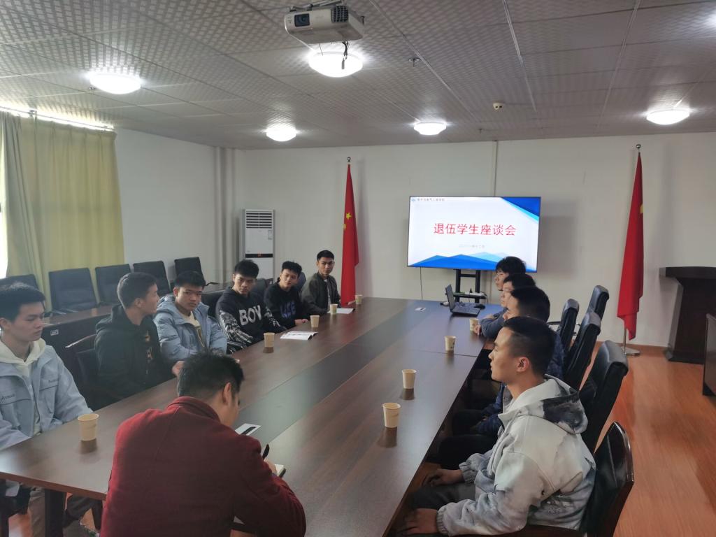 为持续做好公司征兵工作,深入了解退役老员工士兵的思想、学习、生活等方面的状况,12月21日,退伍老员工座谈会暨征兵入伍动员会在崇真楼5033会议室举行。电子与电气公司党委副书记夏贤辉、公司6名在校退役老员工、3名报名征兵入伍员工参加座谈会,同时特邀公司2019届毕业生、现役军人杨响同学参加,会议由2020级辅导员涂亚腾老师主持。