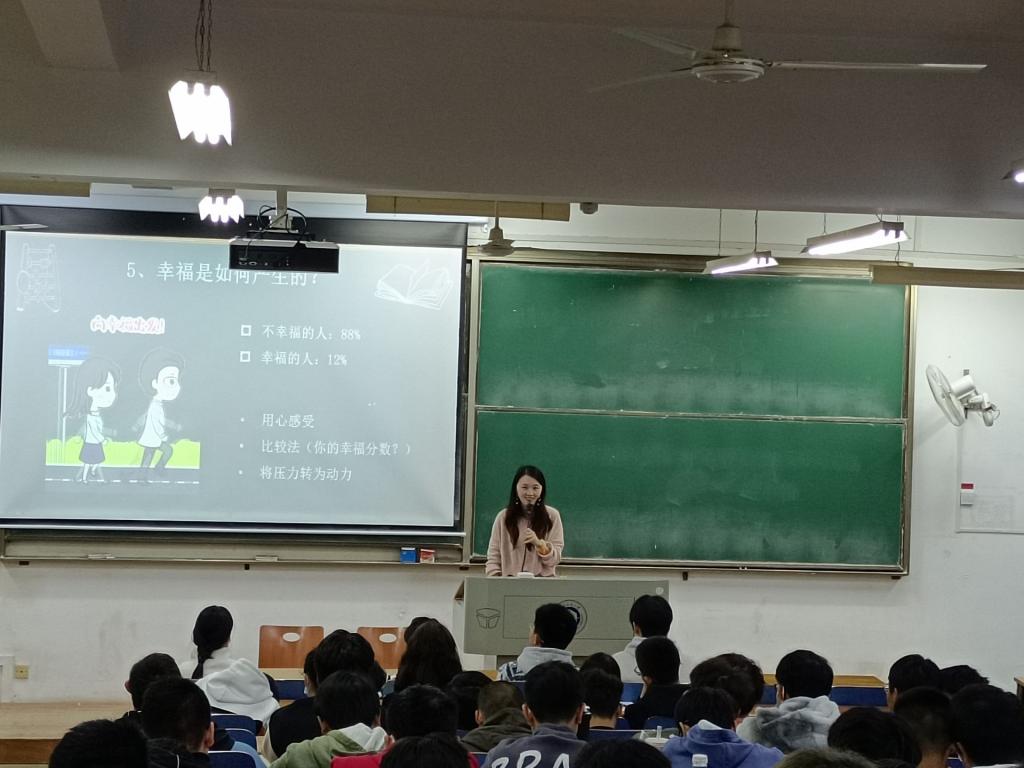 梁老师从老员工心理压力的来源展开,从理想性与现实性的矛盾等方面全面分析了老员工的压力,利用自身多年的实践经验,向同学们分享减压和心理调适的具体技巧和方法,倡导大家正确处理学习与生活中的矛盾,以积极向上的心态面对学习、以乐观豁达的心态投入生活。在活动的间隙,设置了开心的互动环节,同学们都积极参与到活动的中,整个教室洋溢着欢乐的氛围。借此,同学们既放松了心情,又对本次活动的主题有了更深刻的理解。