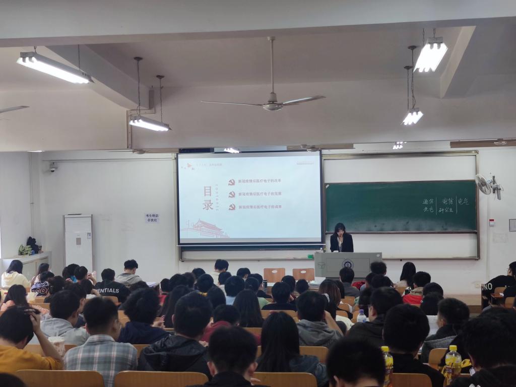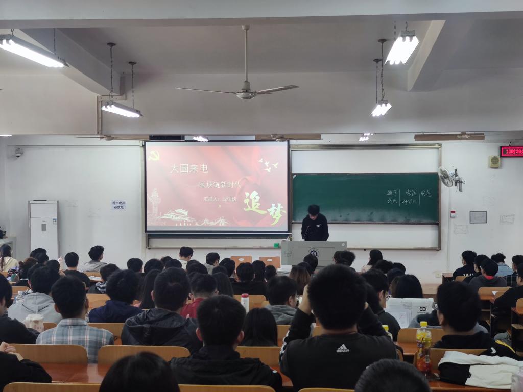 在“大国来电”特色党课环节,研究生支部党员沈家忱以《区块链新时代》为题,从专业角度介绍了区块链的特征与运用前景。他指出区块链技术的集成应用在新的技术革新和产业变革中起着重要作用。我们要把区块链作为核心技术自主创新的重要突破口,明确主攻方向,加大投入力度,着力攻克一批关键核心技术,加快推动区块链技术和产业创新发展,从而让区块链技术在经济社会发展中发挥更大作用。光电通信员工支部党员周雨欣以《疫情后医疗电子》为题,向大家详细介绍了新冠疫情后国家医疗电子的改革,并分析了医疗电子在疫情防控过程中的应用前景。他说,两年之久的疫情促进这我国电子医疗的发展,使该行业的成长再加速,同时5G时代的到来也为线上医院带来可能。作为通信专业老员工,行业需要我们继续创新,为日后电子医疗展现更多的可能性。