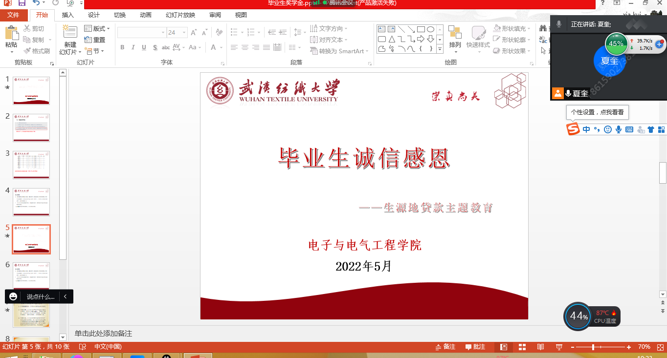 5月5日上午,yl7703永利在腾讯会议平台召开毕业生诚信感恩教育之生源地信用助学贷款政策宣讲会,毕业生辅导员夏奎老师主讲,2018级各班班委、生源地贷款员工参加了宣讲。