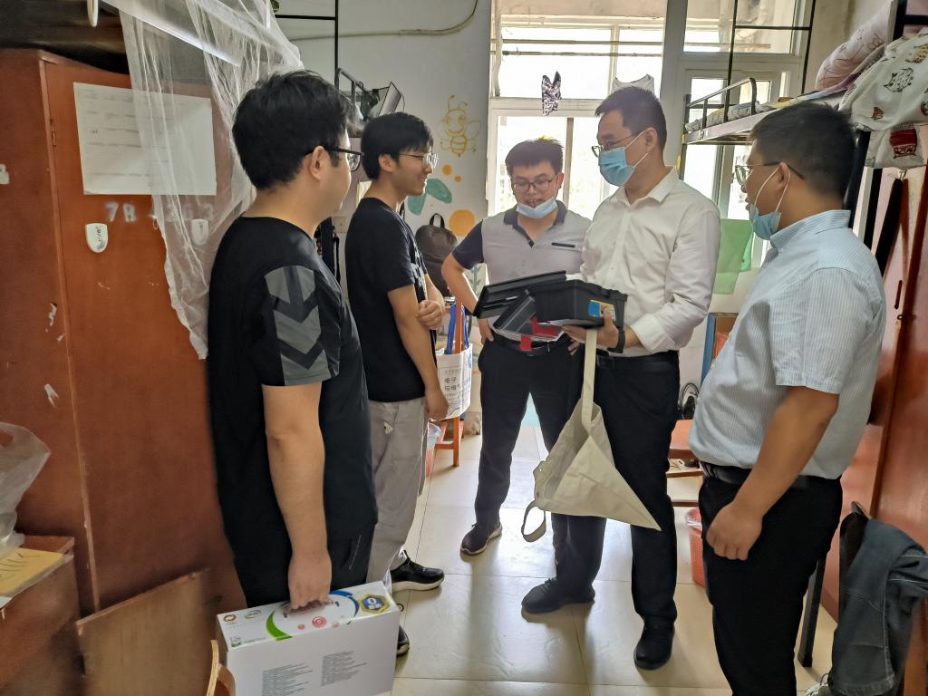 经理刘侃带领研究生导师为研究生新生代表送去专业学习器材,介绍了公司和专业情况,勉励新生在学习过程中要善于钻研,勇于攀登学术高峰,奋发上进。