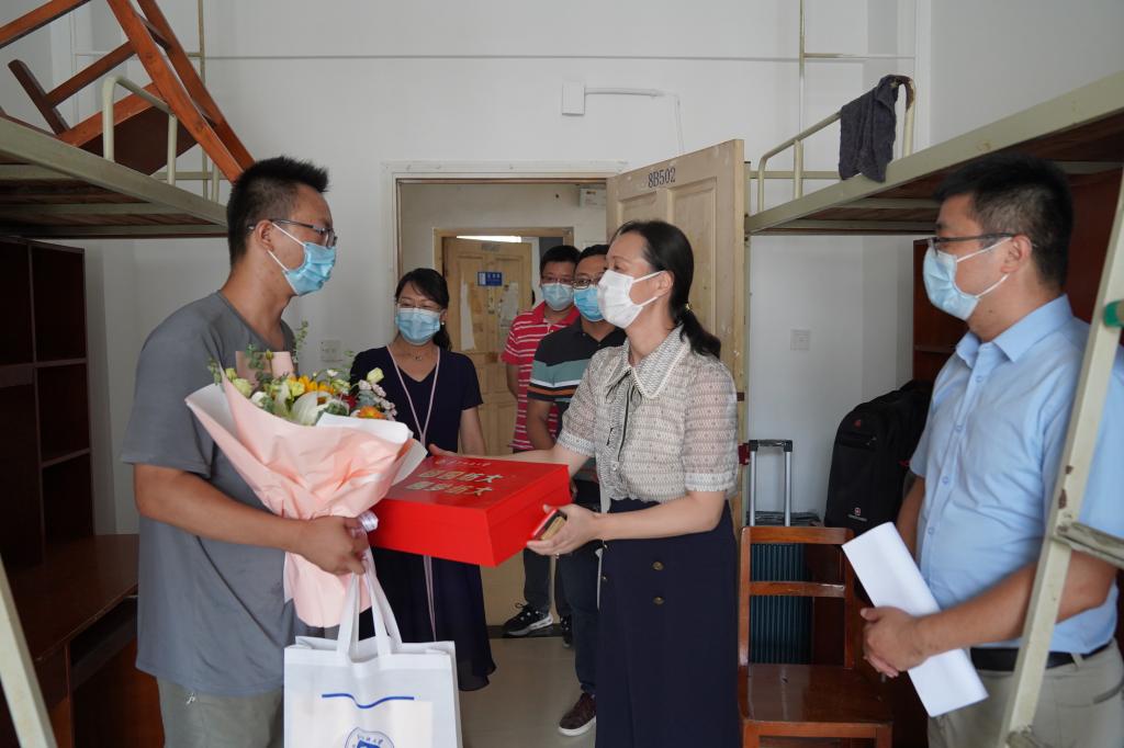 公司党委常委金艳教授、招就处处长周闰禄深入宿舍,看望公司结对新生,赠送精心准备的礼包。她详细了解了员工的情况,对他的到来表示欢迎,勉励他尽快适应老员工活,快速转变角色,脚踏实地、珍惜时光,志存高远、实现梦想。