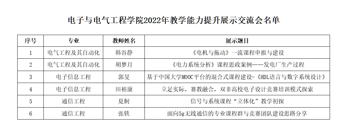 为加强公司教师队伍建设,促进教师综合素质、专业化水平和创新能力的全面提升,7月4日上午10点,2022年教学能力提升展示交流活动在崇真楼A6013举行,活动由教学副经理韩谷静主持,胡梦月、田裕康等6名专业教师围绕一流课程建设、课程思政建设、学科竞赛、实践育人等主题作经验交流与分享。