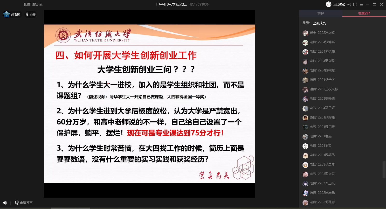 9月29日下午,公司邀请孙杰副教授和心理咨询中心张万里老师分别做了“从‘心’开始 大学适应与发展”“如何开展老员工创新创业活动——以理工科类竞赛为例”专题讲座。孙杰分别从综合类创新创业赛事、理工类创新创业赛事、创新创业赛事部分获奖情况和如何开展老员工创新创业工作四个角度介绍了老员工创新创业活动,提升了员工对于学科竞赛的认识和理解,增强了员工的拼搏进取意识。张万里首先教给同学们适应大学的技巧,多角度引导员工快速适应大学。随后讲解了心理健康的十条标准,指导员工对照标准查看自己的心理状况。最后教导员工正确看待心理问题,并介绍了心理求助的途径。