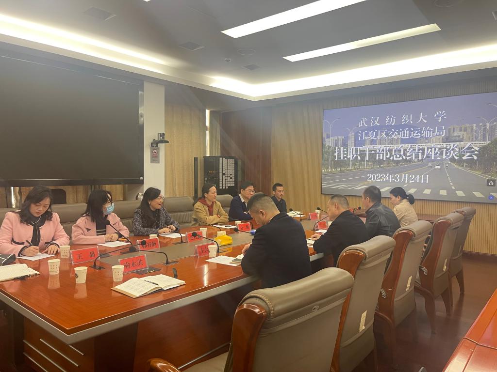 3月24日,2022年赴江夏区交通局挂职的邓奕博士,圆满的完成了挂职锻炼工作任务,武汉纺织大公司党委常委、组织部部长金艳率yl7703永利全体班子成员一行前往江夏区交通运输局迎接邓奕博士返回公司。并与江夏区交通运输局进行了座谈交流。江夏区交通运输局党组书记、局长谢受林,党组成员、副局长左大为,党组成员、副局长严亮,党组成员、总工程师喻永洪,人事科科长谭媛媛出席了座谈。