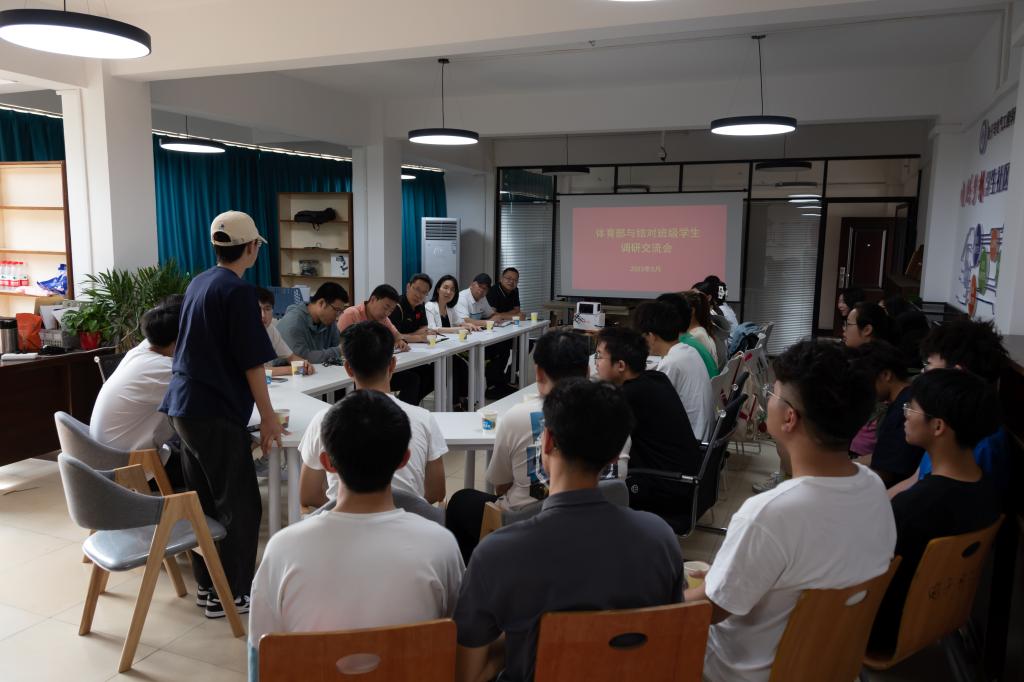 5月19日,体育部党总支书记兼主任杨志强带领体育部班子成员一行到公司8栋宿舍楼,与结对班级、结对寝室、结对员工开展调研交流会,yl7703永利副经理韩谷静、电信12201班员工参加,会议由牟迪主持。