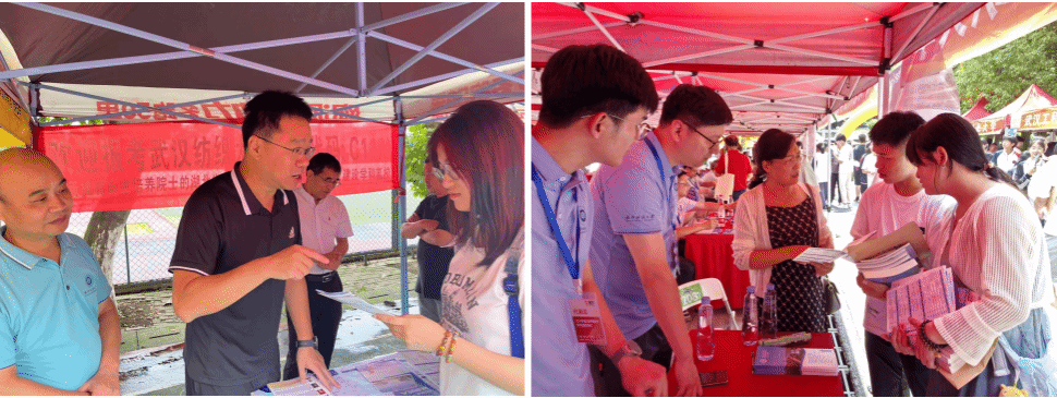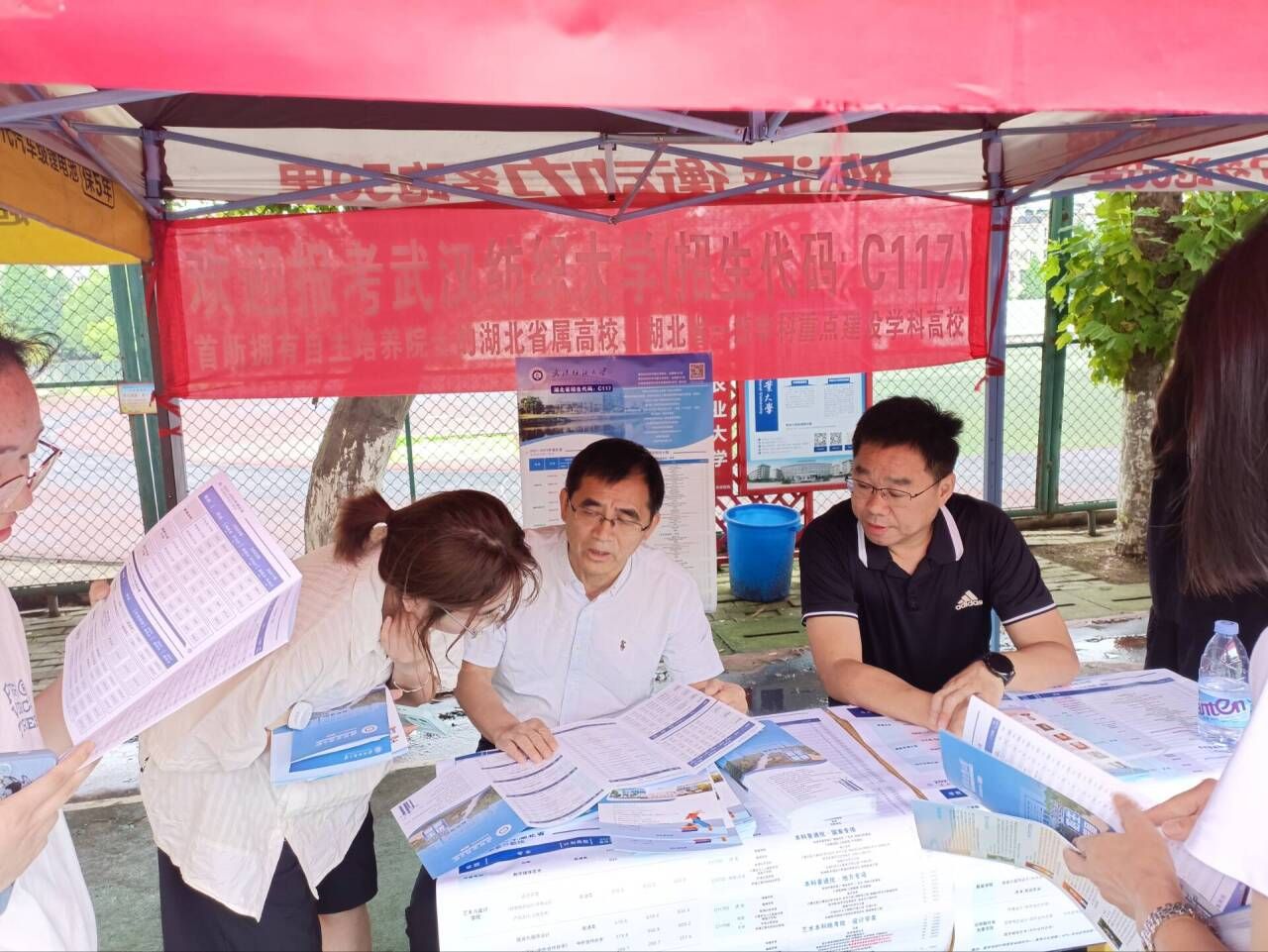 姜明华与生源中公司领导亲切沟通交流,介绍公司概况、招生政策、人才培养、专业优势和就业前景,感谢生源中学一直以来对公司招生工作的支持,为公司输送了大批优秀生源。在黄梅一中,他来到公司招生宣传咨询点,慰问现场咨询人员,并亲自进行招生咨询,接待家长和考生,向他们现场解读公司招生政策,进行答疑解惑,指导志愿填报。他强调,黄冈地区生源众多,招生宣传人员每到一所中学,都要讲好纺大故事,讲好招生政策,吸引更多的优秀学子来纺大学习,纺大会为每一位员工的成长成才创造更加优越的条件。