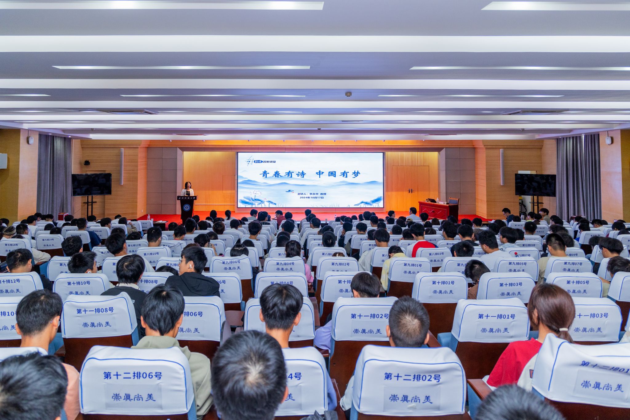 李永华围绕“珍惜寸光阴,莫负三人行”展开讲述,向新同学们分享了他的大学时光、青年生活以及所爱之“歌”。346天连续每天运动、30天共103公里的坚持跑步、一篇篇诗文和专著创作,李永华用实际行动诠释了他的“行动之歌”和“书写之歌”,勉励同学们奋发向上,磨砺坚韧意志,夯实专业知识,培养运动习惯。