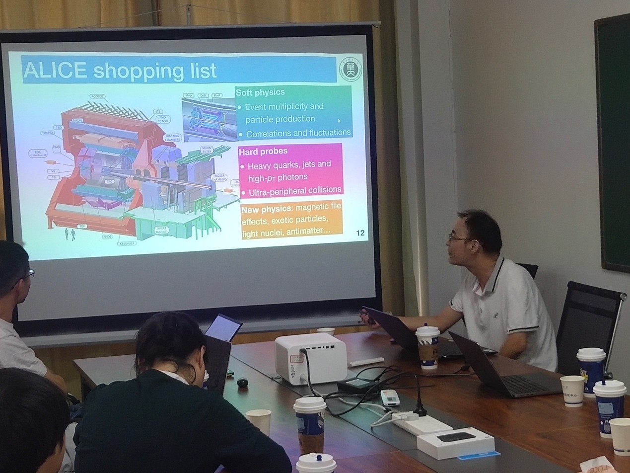 张晓明教授作了题为“LHC重离子碰撞实验中的重味物理”的报告,介绍了欧洲核子研究中心上的大型重离子对撞实验(ALICE)的物理目标与相关核电子学背景,以及ALICE实验近年来为探寻夸克胶子等离子体的相关性质所作的一系列测量工作。张晓明教授的报告还探讨了未来高能核物理领域的研究热点,并展望了这些热点背后可能带来的发展机遇