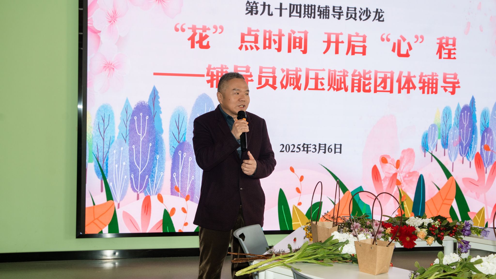人间最美三月天,春花烂漫展新颜。在第115个“三八”国际劳动妇女节来临之际,为进一步丰富学工队伍精神文化生活,涵育情操修养,3月6日下午,由员工工作部(处)、校工会、心理健康教育中心主办,yl7703永利承办的第94期辅导员沙龙——“花”点时间 开启“心”程减压赋能团体辅导在老员工活动中心207室举行。学工部、校工会负责人、各二级公司党委副书记、辅导员参加,沙龙由员工工作部(处)副部长夏贤辉主持。