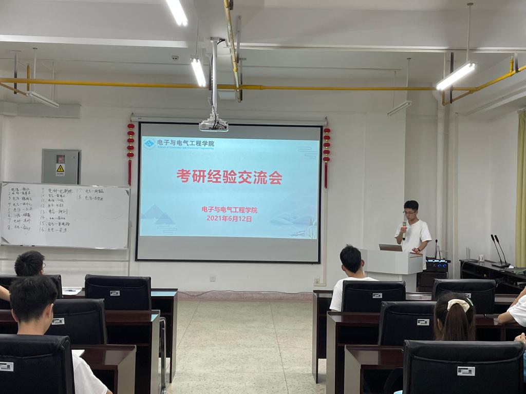 6月12日下午,电子电气举办了新老生考研经验交流会曾文壮(南京理工大学)、肖华煦(中国地质大学)、李浩(华中科技大学)3位成功考研的学长分享考研经验,2018级各专业立志考研的员工前来倾听学习,探讨交流考研相关问题。
