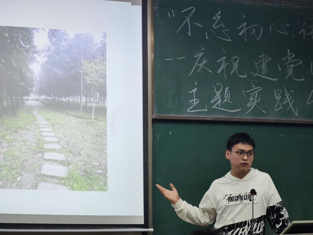 张欣怡同学述说着家乡湖北武汉的变化,在她记忆中家乡从原先老旧的居民矮楼变成了如今鳞次栉比的高楼大厦,寂静的火车道也被繁华的商业街所取代,她说:“正是在党的领导下,武汉才有如今的繁华和富饶,这更加坚定了我追随党坚贞不渝的信念。我要努力练就本领为祖国的繁荣昌盛贡献自己的青春力量。刘童同学家乡在湖北荆门,在他的记忆中,家乡普通狭窄的水泥路已被如今宽敞的沥青和的高架桥所覆盖,原来空旷的平地上已经矗立起了一幢幢高楼,他说“如今的湖北荆门已从资源型城市到航空新城。相信在不久的将来,家乡在党的领导下将实现再度腾飞”。徐桦彬同学将今日整洁的菜市场、改造后温馨的老城区、怡人的遗爱湖公园与昔日对比,展示了党与政府为人民过上美好生活作出的努力和奋斗历程。同学们热情而激动的在台上讲述着自己家乡的巨变,回首党带给家乡的繁荣发展,述说着党创造的每一个奇迹,作为新时代的老员工,为我们党和国家的发展感到无比的骄傲和自豪。