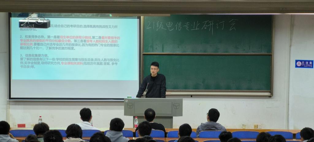 2019级电气专业钟小康首先分享了考取武汉大学研究生的备考经历。针对如何选择目标院校、备考流程、面试技巧等内容做出了详细解答,他指出,每个同学都要结合自身情况,在确定自己的考研目标后,要根据院校准确抓取考研信息,朝着目标不断努力。钟小康学长的分享让同学们对目前的考研报考形势有了更加清晰客观的认识。