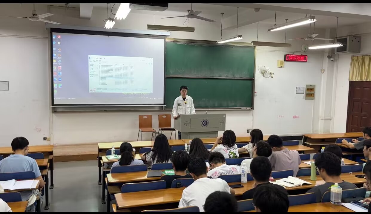 杨思伟详细讲解选调生的起源、工作性质、和报考的注意事项。随后结合自己的老员工涯,从员工工作、专业竞赛、基层实践等方面介绍了未来的就业选择方向。同时,作为省青马学员的他分享了自己如何一步一步靠近并最终走向选调生的过程。分享的最后他提出:“希望每个同学在大学结束时都能找到自己奋斗的方向,勇于尝试,愿青春不负年少、理想不惧未来,我在基层等大家!”