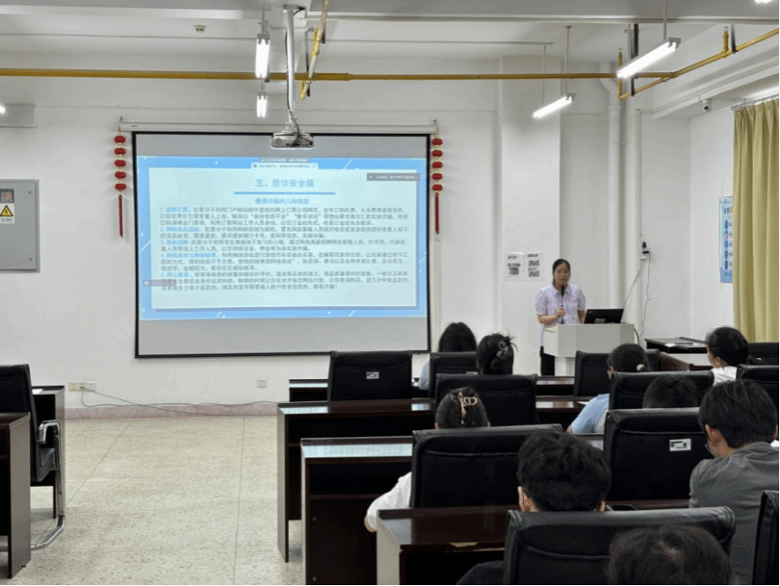 彭斯主要从四个方面开展了本次主题班会:什么是电信诈骗?电信诈骗的常见形式?如何识别和防范电信诈骗?以及遭遇诈骗时的应对措施等。彭斯结合当前校园电信网络诈骗发案的种类、特点,通过引入真实案例,详细讲解了常见的网络游戏诈骗、网络刷单诈骗、兼职诈骗、校园贷诈骗等电信网络诈骗形式,让同学们对诈骗的类型和特征有了更深入的认识,更了解不法分子通常采取的诈骗手段,掌握有效防范诈骗的方法。