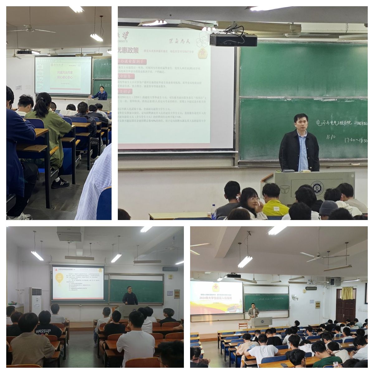 11月10日,各年级辅导员集中进行征兵政策宣讲解读,同时邀请退伍员工士兵进行朋辈交流活动。各年级辅导员重点从报名条件、选拔流程、福利待遇等方面进行了深入介绍,进一步促进同学了解公司征兵入伍相关政策。退役老员工士兵罗宇夏给2024级员工开展了朋辈交流活动,她以自己的军旅生涯为切入点,从入伍初心、入伍成长历练、退役后回到公司的感受等方面进行分享,让同学们更加直观地感受到军人的风采和担当,激发了同学们的爱国热情和报国志向。