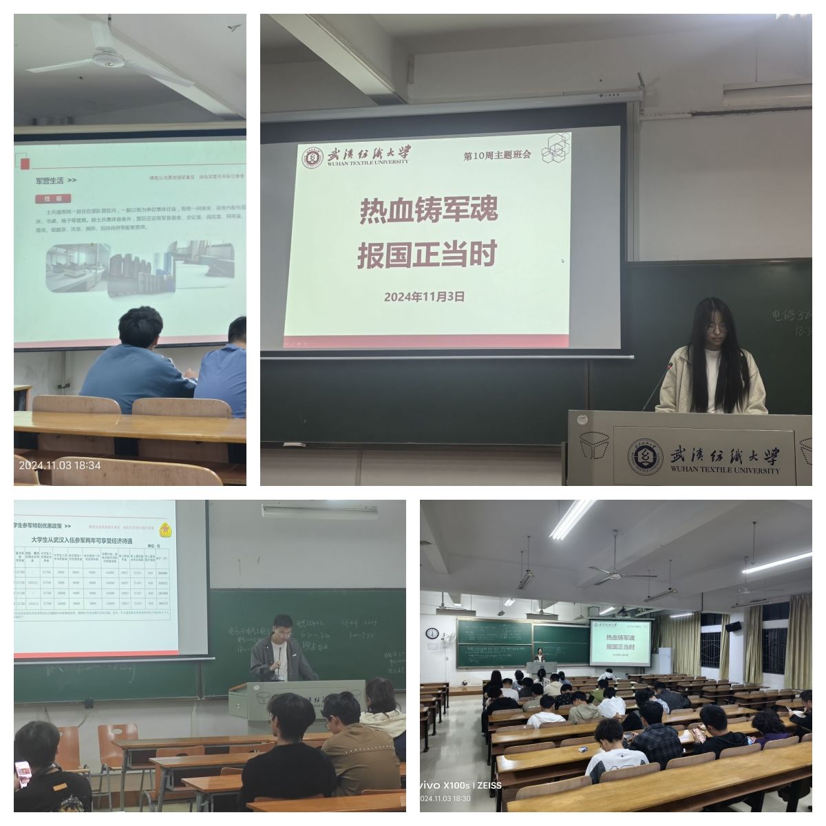 11月3日,各班利用晚点名班课开展了征兵宣讲,此次主题班课由各班班长主持。各年级辅导员、班主任、yl7703永利全体员工参加了此次班课。班课主要围绕应征条件、入伍流程、老员工参军特别优惠政策、军营生活、征兵防诈骗六个方面进行宣传介绍。