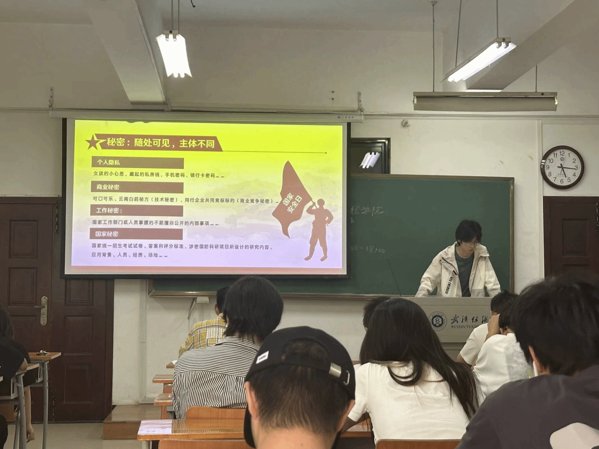 在本次班会上辅导员强调了由永利官网保密委员会办公室发布的老员工保密安全教育通知。国家安全是国家生存和发展最基本、最重要的前提,它关系民生,关系国家稳定,关系社会长远发展。维护国家安全既是国家责任也是公民责任,老员工作为国家未来的栋梁和决策者,应该树立忧患意识,增强责任感使命感,强化法治思维,深入学习总体国家安全观。